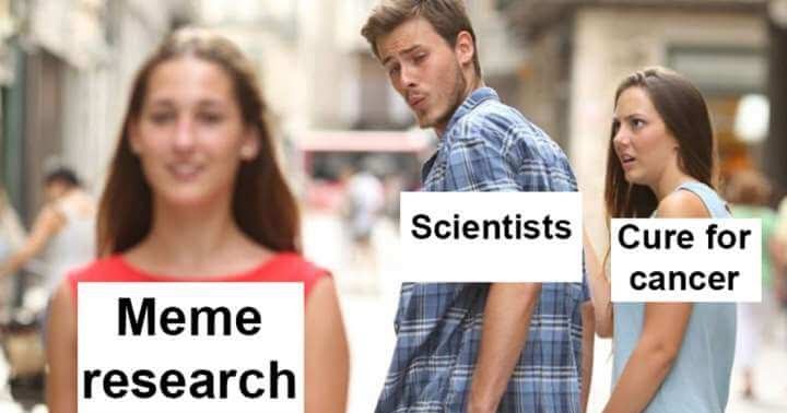 - Distracted Boyfriend – Ah, el meme que capturó la esencia misma de la infidelidad (en forma de fotografía, por supuesto). El Distracted Boyfriend nos mostró cómo una simple mirada de deseo puede poner en peligro una relación estable. Y aunque nadie quiere ser el novio distraído o la novia traicionada, todos nos divertimos mucho especulando sobre qué le espera a esa pareja en el futuro. ¡Karma, tal vez?